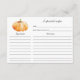 Cartes de recettes parfaites pour que vos invités de mariage / douche nuptiale complètent pour que la mariée soit. Design simple avec une belle illustration citrouille parfaite pour une douche nuptiale fin été ou début automne.