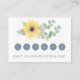 Cette carte de fidélité botanique présente un charmant tournesol à l'aquarelle et une source feuille d'eucalyptus vert. Utilisez les champs modèle pour ajouter vos coordonnées personnelles et vos informations de fidélité. La carte revient à une couleur gris solide. Pour voir ma ligne complète visiter www.zazzle.com/vginvites Art et design par Victoria Grigaliunas cartes de fidélité, salon, élégante, cartes perforées, client, feuilles,