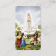 Carte de prière Notre-Dame de Fatima avec la Sainte Vierge Marie apparaissant aux enfants de Fatima. La prière sur le dos dit "Priez le Rosaire chaque jour afin d'obtenir la paix pour le monde." Notre Dame de Fatima le 13 mai 1917 et "Il n'y a pas de problème, je vous dis, peu importe la difficulté, que nous ne pouvons pas résoudre par la prière du Saint Rosaire." - Soeur Lucy de Fatima