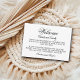 Cette élégante carte de présentation pour panier cadeau de bienvenue en noir et blanc avec une calligraphie très élégante peut être facilement personnalisée pour votre événement très spécial ! C'est une façon agréable de remercier vos invités venus de loin pour le voyage qu'ils ont dû faire pour célébrer avec vous votre grand jour. Avec cette carte personnalisée, vous êtes à un pas de transformer votre célébration en un événement remarquable.