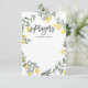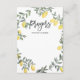 Demandez à la famille et aux amis de donner leurs prières et leurs souhaits et souhaits à votre petit avec cette prière personnalisable pour carte bébé. Il est doté d'une couronne de citron aquarelle et d'un motif à rayures jaunes et blanches. Lumineux et capricieux, parfait pour les événements du printemps et de l'été.
