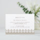 Conçue pour coordonner avec nos invitations de mariage et d'événement Arabesque, cette carte de réception élégante et luxueuse dans des tons champagne et beige présente une bordure géométrique inspirée du Maroc en bas. Ajoutez vos informations de réception de mariage comme l'heure, le lieu, l'adresse et les détails de stationnement ou de transport en beige-gris. Nous recommandons d'imprimer ce style sur le papier Champagne Shimmer pour une finition lumineuse.