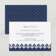 Conçue pour coordonner avec nos invitations de mariage et d'événement Arabesque, cette élégante carte de réception dans un bleu nuit et blanc intemporel présente une bordure inférieure géométrique inspirée du Maroc. Ajoutez vos informations de réception de mariage comme l'heure, le lieu, l'adresse et les détails de stationnement ou de transport dans un bleu nuit assorti.