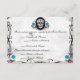 Carte de réception Calaveras Sugar Skull & Flourishes. Caractéristiques d'un crâne de sucre Muerte Dia De los Muertos, fleurs vivement colorées entourées de fioritures élégantes. Le fond est un aspect en détresse gris/blanc ! Illustration originale de Julie Farrell 2012. Veuillez ne pas copier ou reproduire en dehors de Zazzle conformément aux lois sur le droit d'auteur. Conception époustouflante pour ce mariage rocker day of the dead !