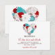 Carte de réception de mariage cœur floral fantaisiste bleu Tiffany et rouge