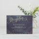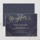 Design de calligraphie à lettres dorées et confettis dorés sur fond aquarelle de ciel nocturne bleu foncé, effet métallisé pailleté or faux, moderne, chic, propre et élégant, parfait pour un mariage vintage ou un mariage d'hiver en soirée. Personnalisez votre propre carte de réception pour votre invitation de mariage.