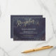 Conception de calligraphie à main levée or glamour et confettis de points or sur fond aquarelle sombre de nuit ciel marine, effet pailleté métallisé or brillant, moderne, chic, propre et élégant, parfait pour un mariage vintage ou un mariage d'hiver en soirée. Personnalisez votre propre carte de réception pour votre invitation de mariage.