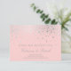 Élégante et moderne carte de réception avec des points de confettis argentés sur fond rose blush. Il s'agit de faux papier argenté - il n'y aura AUCUNE feuille métallique réelle. Cela fait partie d'une suite de mariage. Les articles assortis sont disponibles.