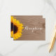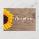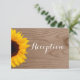 Cartes de réception de mariage en bois de grange rustique avec tournesol campagnard. Cette carte de réception de mariage a un fond avec une impression de grain de bois en détresse avec un beau tournesol jaune sur le côté. Idéal pour les mariages champêtres, les mariages en grange et les mariages de cow-boy. Choisissez entre des coins carrés ou arrondis. Ajoutez simplement les détails de votre réception au verso de la carte.