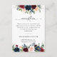 Carte de réception de mariage floral de la Bourgogne et de la Marine. Cette invitation à la douche de mariage élégante et élégante présente de magnifiques aquarelles peintes à la main de la Bourgogne et de la Marine. Trouvez les articles correspondants dans la Collection Florale de Bourgogne et de la Marine.