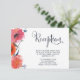 Superbes fleurs d'aquarelle rose et orange avec feuilles bleu marine et accents. Complété avec la typographie de la réception dans un joli script contemporain / écriture cursive. Suite de faire-part de mariage complète disponible ! Personnalisez-vous en ligne et faites-les livrer à votre porte. Chacune est livrée avec une enveloppe blanche de taille équivalente incluse dans le coût.