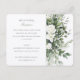 Cette carte de réception de mariage est un gage d'élégance sobre, ornée d'un étonnant agencement latéral de roses blanches et d'une cascade de verdure qui présente des tons allant du celadon au vert chasseur. Le texte invitant, présenté dans une police sophistiquée, invite les invités à une soirée de célébration, dressé contre un arrière - plan blanc doux et propre qui permet aux détails floraux de vraiment briller. Le design est parfait pour transmettre la chaleur et la joie de l'occasion tout en maintenant un thème botanique chic.