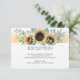 Conçue pour aller avec le faire-part de mariage jaune soleil et bleu marine VG Invites, cette carte d'invitation à la réception aux accents botaniques jaunes frais comporte des tournesols et de la verdure sur le texte de votre choix. Le verso présente des rayures bleu marine modernes. Pour voir plus de créations de VG Invites, visitez www.zazzle.com/vginvites