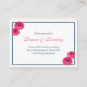 Le texte sur ces cartes de réception de mariage bleu marine et rose gerbera est entièrement personnalisable. Pour le modifier, utilisez l'option personnalisée. Pour des modifications plus importantes, y compris des modifications de police, de couleur de police ou de couleur arrière - plan, utilisez l'option personnaliser. Vous pouvez modifier la couleur de la carte si vous le souhaitez. À noter, ils sont commandés en lots d'au moins 100. Si des numéros plus petits sont requis, la carte de date de cette ligne, avec des modifications au texte, peut également être transformée en carte de réception.