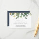 Conçue pour aller avec notre collection de mariage Eucalyptus Grove, cette carte de réception botanique luxuriante présente un spray de feuilles aquarelles et de feuillage d'eucalyptus vert, surmontant vos détails de réception, heure et adresse.
