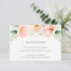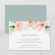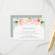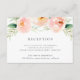 Conçue pour coordonner avec notre collection de mariage Airy Floral, cette carte de réception luxuriante présente un spray de fleurs et de feuilles aquarelles pastel en pêche et vert menthe, surmontant vos détails de réception, heure et adresse.