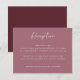 Cette carte de réception de mariage moderne à l'écriture manuscrite est faite dans une belle merlot profonde / vin / couleur rouge bordeaux. Donnez à vos invités les détails importants de votre réception de mariage avec cette carte de réception de mariage moderne.