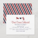 Une carte de réception pour coordonner avec la suite d'invitation 'Airmail'. Présentée dans des nuances de marine et de rouge. Espace pour imprimer vos détails de réception sur le devant, avec un motif de bandes diagonales décoratives au verso. Si nécessaire, le motif peut être supprimé et du texte supplémentaire imprimé au verso.