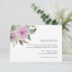 Élégante carte de réception de mariage aux tons chics de lavande pastel violet et de vert sauge avec un bouquet floral aquarelle dans le coin supérieur gauche, avec les détails de votre réception dans une écriture classique noir délavé. Personnalisez avec les détails de votre réception de mariage, y compris l'heure, le lieu, l'adresse et toute information supplémentaire comme le transport ou le stationnement.
