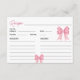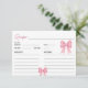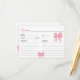Réunissez les recettes préférées de vos invités de douche nuptiale avec cette charmante Coquette Pink Bow Recipe Card. Avec ses arcs roses délicats dessinés à la main dans des tons doux et roux, cette carte ajoute une touche féminine et ludique à votre événement. Avec des espaces pour les ingrédients, les directions et d’autres détails importants, il est à la fois élégant et fonctionnel. Parfait pour une douche nuptiale chic ou une fête sur le thème des vacances, cette carte permet aux clients de partager leurs recettes précieuses avec les futurs mariés.