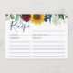 Carte de recette de Fête des mariées florale de tournesol chic