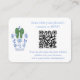Cette carte d'insertion de code QR simple et élégante (pour le registre ou la réponse ou toute autre chose liée à l'événement) présente mon illustration originale de pot à gingembre bleu et blanc avec un nœud vert. Au verso se trouve un tartan bleu et vert festif.
