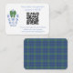 Cette carte d'insertion de code QR simple et élégante (pour le registre ou la réponse ou toute autre chose liée à l'événement) présente mon illustration originale de pot de gingembre bleu et blanc avec un nœud vert. Au verso se trouve un tartan bleu et vert festif.