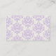 Jolie carte d'enceinte d'enregistrement de douche nuptiale, faite en lavande solide, à l'avant, et joli modèle lavande et damas en ivoire, à l'arrière. Le texte noir, sur le devant de la carte, est prêt à être personnalisé avec les informations du registre de la mariée. Grand ajout à nos élégantes invitations à la douche nuptiale damasée lavande.