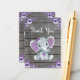 Purple Rustique Floral Girl Elephant Carte de remerciements pour Anniversaire, Baby shower.