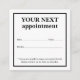 Carte de rendez-vous simple, élégante, minimaliste et personnalisable pour salon de beauté (cheveux, maquillage, ongle). Design élégant avec arrière - plan blanc clair et texte noir.