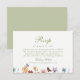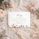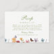 Cette carte de réponse de mariage de jardin de fleurs sauvages est un complément botanique raffiné et artistique à votre suite d'invitations romantiques. Avec des florales de prairie peintes, des accents de papillons délicats et une typographie verte de jardin animée, elle capture l'esthétique de jardin enchanté que les jeunes mariées modernes adorent. Parfaite pour les mariages d'été et en plein air, elle crée une expérience de papeterie cohérente et élégante lorsqu'elle est associée à des invitations et des doublures d'enveloppe assorties.