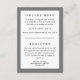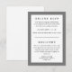 Le type classique et un cadre élégant de couleur donnent à cette carte de réponse et de registre la polyvalence nécessaire pour s'intégrer à toutes sortes d'invitations, il suffit d'ajuster la couleur de fond et la couleur de la ligne pour correspondre aux couleurs de votre événement. N'oubliez pas de personnaliser le texte et d'orienter vos invités vers votre RSVP de mariage en ligne et vos registres.