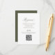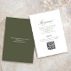Élégante et minimaliste, la carte de réponse de mariage vert olive présente une calligraphie romantique et un QR code moderne pour des réponses en ligne faciles. Cette carte d'insertion élégante est parfaite pour les thèmes de mariage classiques, botaniques ou modernes, permettant aux invités de scanner et de répondre rapidement. La mise en page épurée associée à une palette vert olive douce crée un look intemporel et sophistiqué pour votre suite de papeterie de mariage.