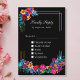 Nous aimons les couleurs vives et les motifs audacieux, nous voulions donc quelque chose d'amusant et fantaisiste, mais suffisamment élégant pour un mariage. Cette carte de réponse RSVP avec un design de choix de menu présente une abondance de fleurs colorées et une typographie moderne sur fond noir pour un look floral sophistiqué qui conviendrait à des mariages tout au long de l'année.