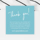 Il s'agit d'un carte de visite d'appréciation du client. Vous pouvez ajuster le message au besoin pour ajouter des informations sur votre produit, offrir une remise spéciale aux clients répétés, ou demander un avis sur votre site Web ou les médias sociaux. Le design fonctionne bien pour remercier les clients pour leur entreprise. Vous pouvez intégrer cette carte à des commandes achetées en ligne pour encourager vos clients à en apprendre davantage sur votre entreprise en naviguant sur votre site Web.