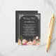 Carte de voeux de mariage vintage avec fleurs sur tableau noir et puits de voeux.
