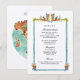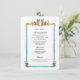Elégante carte de détails mariage italien avec aquarelle peinte à la main vintage poterie italienne motif en Terra-cotta, or et blues avec aquarelle de l'Italie dans le dos.