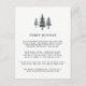 Conçues pour s'adapter à notre collection de faire-part de mariage de la forêt d'hiver, ces élégantes cartes à enclos rustiques sont dotées d'un trio de silhouettes de pins en bleu cool hivernal. Vous vous demandez quelles informations inclure sur un encart faire-part de mariage ? Prenez en compte des détails comme l'hébergement à l'hôtel, les codes de groupe, le transport, l'itinéraire, les informations sur la réception de bienvenue et votre URL du site Web mariage. Vous pouvez même télécharger une carte vers l'envers à l'aide de la fonction Personnaliser.