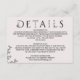 Cette carte de détails mariage de typographie florale est parfaite pour un mariage élégant. Le design romantique présente un lettrage simple orné de fleurs, un bordement botanique et un arrière - plan subtil et blush.