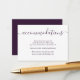 Vous pouvez glisser ces élégantes petites cartes violettes dans vos invitations de mariage pour informer les clients de la ville de tout arrangement d'hôtel, ou les codes de groupe. Personnalisez facilement ces cartes de boîtier modernes en ligne. Éléments correspondants disponibles. Les demandes personnalisées sont les bienvenues.