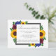 Le design présente d'élégants tournesols, des roses et des fleurs sauvages aux couleurs jaune doré, bordeaux et bleu. Le design comporte également un cadre gris charbon de bois. Vous pouvez modifier la couleur arrière - plan sur l'avant et l'arrière en fonction de la couleur de votre choix ou laisser les deux sur le blanc.