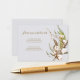 L'élégante carte d'hébergement rustique mariage est ornée d'une couronne de coton d'aquarelle et de plumes de faisan sur un arrière - plan gris clair. Coordonnées avec le jeu de mariage rustique en coton.