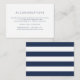 Faites glisser ces cartes chic et de petite taille dans vos invitations à des mariages ou à des événements pour informer les clients de la ville de tout arrangement d'hôtel ou codes de groupe. Les cartes sont dotées de lettrage bleu marine moderne sur un arrière - plan blanc et de rayures marines et blanches.