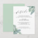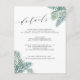 Conçue pour coordonner avec notre collection de mariages Tropical Foliage, cette carte d'information d'invités d'aquarelle verte fraîche comporte des frondes de palmiers d'île aux coins, encadrant vos principaux détails de mariage, comme les chambres d'hôtel, les informations de bienvenue de la réception, le site Web et plus encore. Ajoutez votre texte personnalisé à l'aide des champs fournis et utilisez la fonction Personnaliser pour ajuster les polices, les tailles et l'espacement.