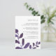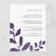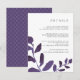 Conçue pour coordonner avec notre collection de mariages botaniques en Violet, cette carte d'information chic en prune et en blanc présente des ressorts d'aquarelle violet vif, encadrant vos principaux détails mariages, tels que les chambres d'hôtel, les informations de bienvenue à la réception, le site Web et plus encore. Ajoutez votre texte personnalisé à l'aide des champs fournis et utilisez la fonction Personnaliser pour ajuster les polices, les tailles et l'espacement.