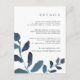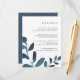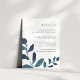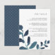Conçue pour coordonner avec notre collection de mariages botaniques en Ultramarine, cette carte d'information chic bleu et blanc présente des ressorts de couleur turquoise foncée et vibrante, encadrant vos principaux détails mariages, tels que les chambres d'hôtel, les informations de bienvenue à la réception, le site Web et plus encore. Ajoutez votre texte personnalisé à l'aide des champs fournis et utilisez la fonction Personnaliser pour ajuster les polices, les tailles et l'espacement.