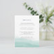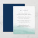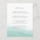 Conçue pour coordonner avec notre collection de mariages Seaglass Tides à Indigo, cette carte d'information d'invités chic du littoral comprend un simple lavage d'aquarelle de couleur verte de mer le long du fond, ancrant vos principaux détails de mariage, comme les chambres d'hôtel, les informations de réception de bienvenue, le site Web et plus encore. Ajoutez votre texte personnalisé à l'aide des champs fournis et utilisez la fonction Personnaliser pour ajuster les polices, les tailles et l'espacement.