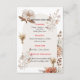 Ce modèle de carte d'information de mariage floral bohème est conçu avec de l'herbe de pampa élégante et des éléments floraux secs doux dans des tons neutres chauds. Il fournit aux invités des informations importantes sur le mariage telles que les détails de la cérémonie, les informations sur la réception, le code vestimentaire et les notes sur l'hébergement.