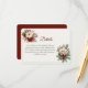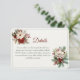 Fournissez à vos invités toutes les informations essentielles sur votre mariage en utilisant cette carte de détails hivernaux rustiques. Avec des florales rouges et blanches festives, de la verdure de pin et une typographie élégante, c'est le compagnon parfait pour votre suite de mariage sur le thème de Noël. Idéal pour ajouter des liens de site web, des informations d'hébergement, des directions ou des détails de RSVP.