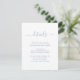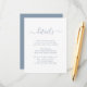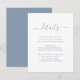 Fournissez à vos invités les détails importants avec cette élégante carte d'information de mariage moderne bleu poussiéreux avec une police de caractères script moderne. Articles assortis disponibles.